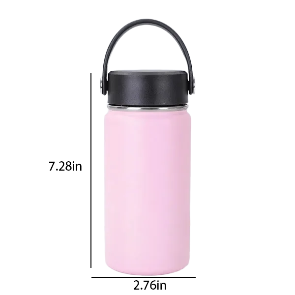 Stay hydrated in style with this 14oz custom vacuum insulated stainless steel sports bottle. Made from premium 304 stainless steel, it offers long-lasting temperature retention for both hot and cold drinks. Measuring 7.28 x 2.76 inches, it’s the perfect size for on-the-go use. The wide mouth design allows for easy cleaning and pouring, while the leak-proof twist lid with a sturdy carry handle ensures convenient portability. Ideal for outdoor adventures, gym sessions, commuting, or daily hydration, this bottle comes in a variety of colors and supports laser-engraved logo customization for branding. Durable, sleek, and BPA-free, it’s a practical gift choice.