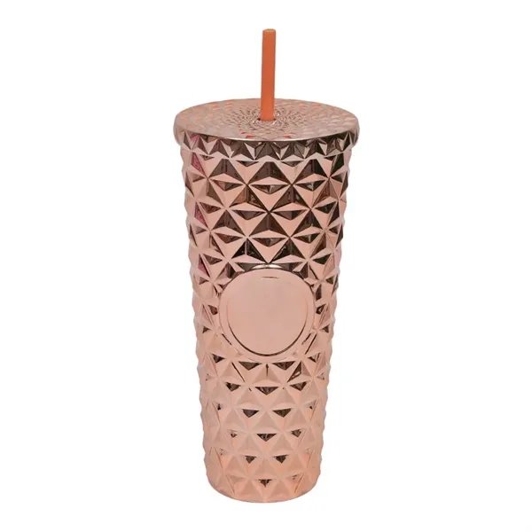 This stylish 24oz textured plastic tumbler is perfect for enjoying cold beverages on the go. Made from durable, BPA-free plastic, it features a unique geometric pattern for a trendy look and comfortable grip. The secure screw-on lid helps prevent spills, while the reusable straw makes sipping effortless. Ideal for daily hydration, office use, travel, or outdoor adventures, this tumbler keeps drinks refreshingly cool. Lightweight and portable, it fits most car cup holders for added convenience. A great promotional gift, it can be customized with your logo or design. Perfect for events, giveaways, or corporate branding, this eco-friendly tumbler reduces single-use plastic waste while providing a stylish and functional drinkware option.
