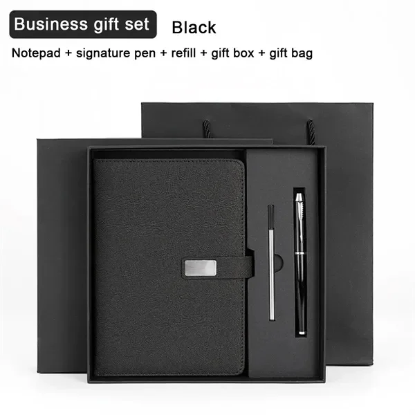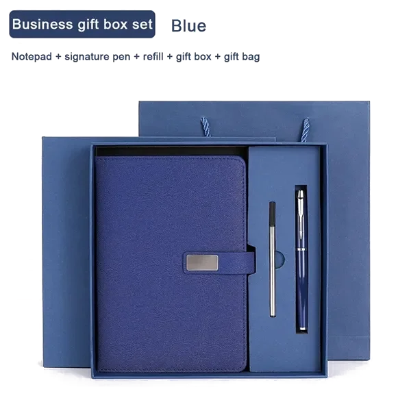 This custom A5 notebook gift set is a professional and elegant choice for corporate events, meetings, and client appreciation. The set includes a textured cover notebook with a sleek magnetic clasp, a high-quality signature pen, an extra refill, a matching gift box, and a gift bag. The notebook’s A5 size offers ample space for notes, schedules, or journaling, making it perfect for business or personal use. Available in four classic colors-black, red, green, and blue-this gift set supports custom logo printing, offering a personalized branding opportunity. Ideal for employee recognition, business conferences, or promotional giveaways.