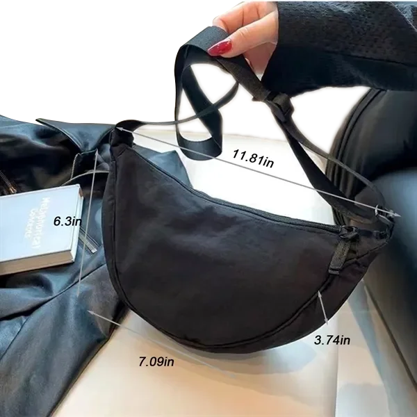 Crafted for everyday versatility, this custom nylon crossbody dumpling bag blends minimalist Japanese aesthetics with practical function. Measuring 11.81 x 6.3 x 3.74 inches, it offers just the right space for your daily essentials while maintaining a sleek profile. Made of lightweight, durable nylon with a canvas-like texture, this bag features a secure top zipper closure, a soft structured body, and a wide adjustable shoulder strap for all-day comfort. Available in three versatile colors, it’s perfect for commuting, shopping, or casual outings. Heat transfer printing ensures vibrant and long-lasting custom logos, ideal for brand promotions or personal gifts.