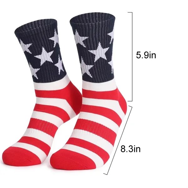 These custom patriotic socks are perfect for promotions and events. Designed with vibrant stars and stripes, they offer a fun and stylish way to represent your brand. Ideal for corporate giveaways, sports events, or trade shows, these socks are made from comfortable, high-quality cotton material. The socks feature space for custom logos or designs, making them perfect for businesses looking to enhance their marketing efforts. Whether for promotional gifts, team sports, or as giveaways, these socks make a bold statement.