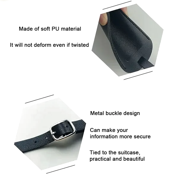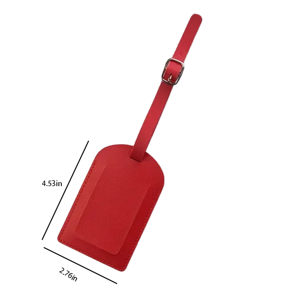 Travel in style with these custom PU leather luggage tags, designed for durability and convenience. Measuring 4.53 x 2.76 inches, each tag is crafted from soft yet firm synthetic leather that resists deformation, making it ideal for long-term use. The flip-open design features a transparent ID window for quick identification, while the sturdy metal buckle securely attaches the tag to any suitcase, backpack, or carry-on. Available in a range of vibrant colors, it adds a personal touch to your travel gear. Perfect for corporate giveaways, travel promotions, or personal use. Custom logo options include embossing and hot stamping.