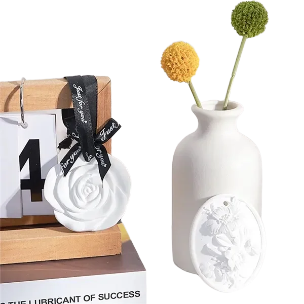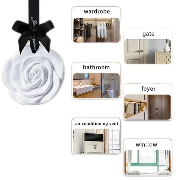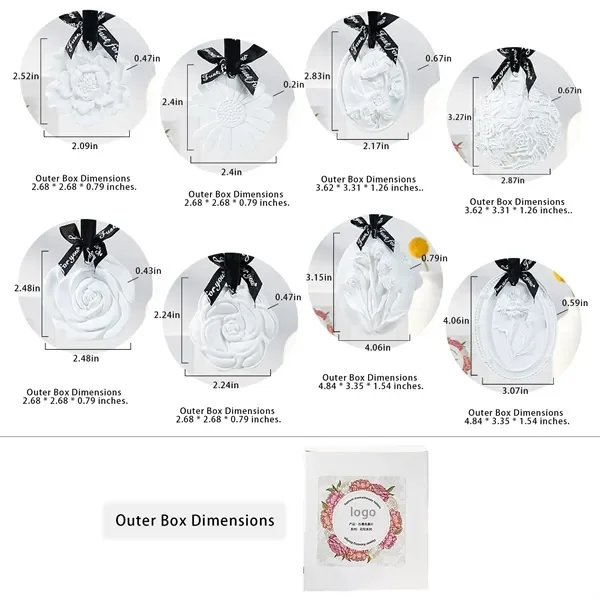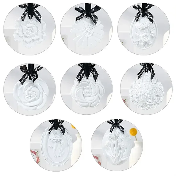 Customizable floral scented plaster ornaments offer elegance and functionality. Made with 60% natural plant essential oils, these ornaments gently diffuse fragrance, lasting 90 to 180 days depending on ventilation. Choose from a variety of floral designs, each delicately crafted for durability and charm. Perfect for multiple scenarios such as closets, living rooms, bathrooms, or bedrooms, they include an easy-to-hang ribbon. Customization options allow for logo printing on ribbons and packaging boxes, making them ideal for gifting and branding purposes. A perfect gift for car air fresh, housewarming, weddings, or holidays, these eco-friendly ornaments provide a soothing aroma and freshen the air, enhancing any space with their beauty and utility.