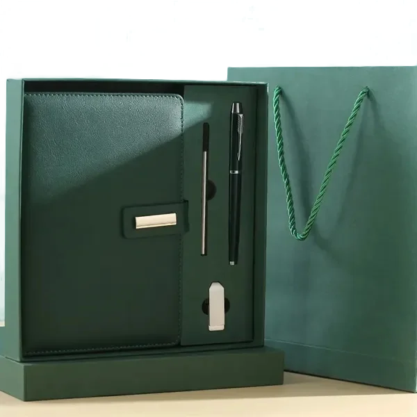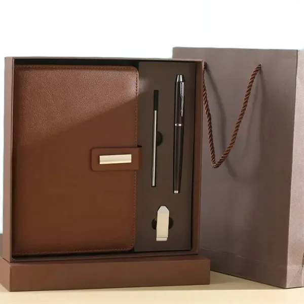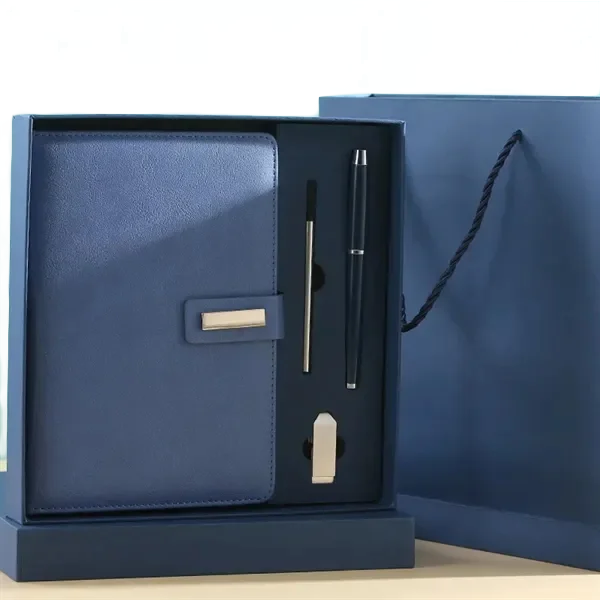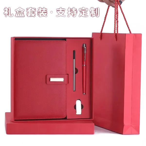Perfect for corporate gifting, employee recognition, or promotional events, this deluxe red PU leather notebook gift set combines style and practicality. Presented in an elegant gift box, the set includes a high-quality PU leather notebook, a smooth-writing pen, and additional office accessories. The notebook features a durable PU leather cover, ample writing space, and a secure closure for added functionality. The sleek pen ensures comfortable writing, making it an essential companion for meetings, planning, or journaling. Available in five vibrant colors, this gift set supports logo customization for personalized branding. With its luxurious packaging, this set is designed to impress and elevate your gifting experience, making it ideal for both professionals and students.