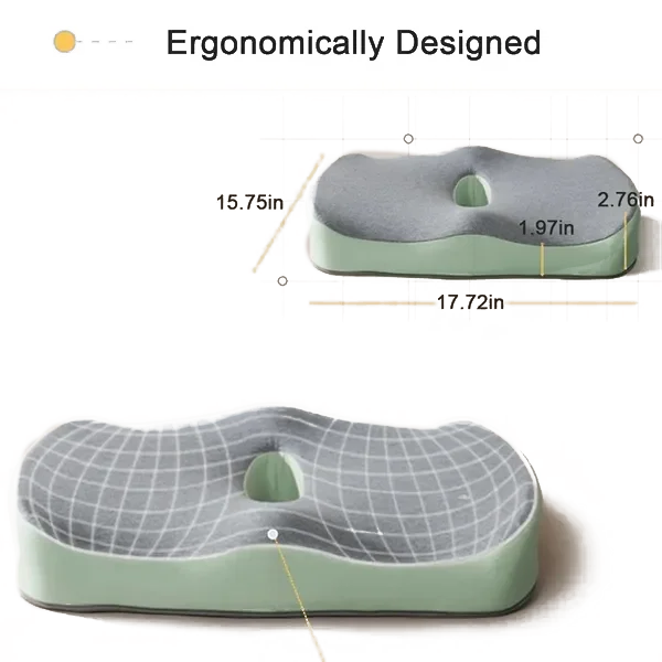 Experience unparalleled comfort with this ergonomic memory foam seat cushion, designed for individuals who sit for long hours. Made from high-density, zero-pressure memory foam, this cushion conforms to your body’s natural curves, promoting better posture and relieving pressure on the tailbone and lower back. The cushion measures approximately 17.7″ x 15.7″ x 2.8″ and features a breathable, anti-slip bottom to keep it securely in place. Its innovative hollow center enhances airflow, preventing heat buildup and ensuring a comfortable sitting experience. The soft, removable outer cover is machine washable, maintaining freshness and hygiene.