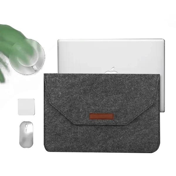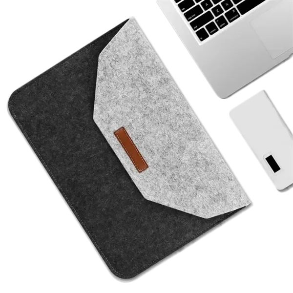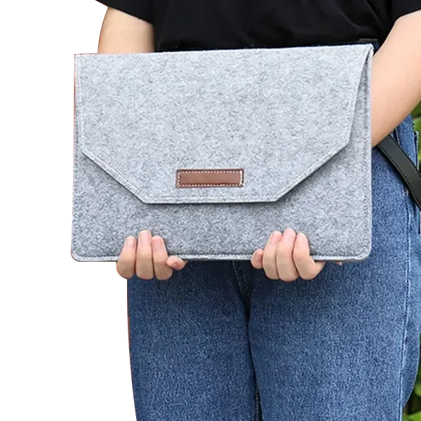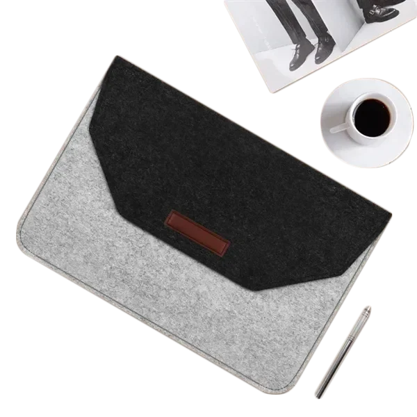 This stylish felt laptop sleeve offers a sleek and practical way to protect your laptop or notebook. Designed with a soft, durable felt exterior and a leather accent for a sophisticated touch, this sleeve fits most 15″ laptops comfortably. Measuring approximately 16″x11″, it provides ample space while maintaining a slim profile that’s perfect for slipping into backpacks, briefcases, or carrying on its own. The sleeve features a simple yet secure flap closure, keeping your device safe from dust and scratches. Ideal for business professionals, students, or anyone looking for an elegant and functional laptop protector. Customization options are available for logo printing, making this product a perfect promotional gift.