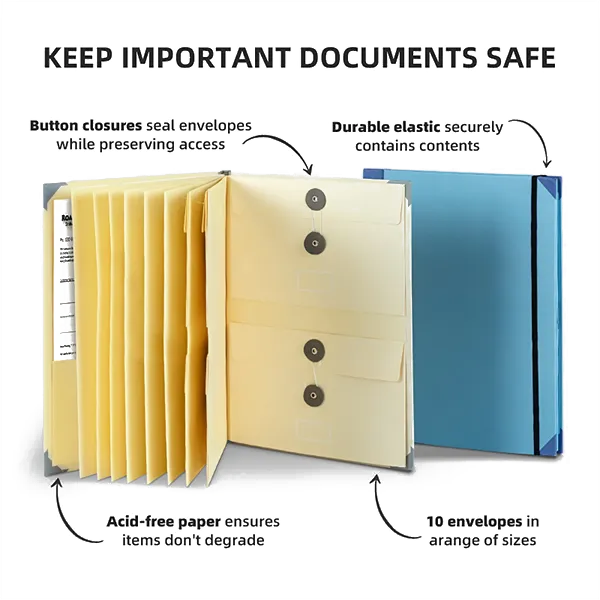 With multiple compartments and a durable design, it provides an efficient storage solution for home or office use. This customizable file folder features a secure button closure, making it ideal for keeping important documents organized and accessible. The folder is made from high-quality material to ensure longevity, while its expandable design allows you to store a variety of paper sizes. Ideal for personal documents, business files, and other paperwork, this folder offers a practical solution for anyone looking to manage their documents efficiently. Personalize it with custom labels for easy identification of contents. Available in multiple colors and sizes to suit various needs.