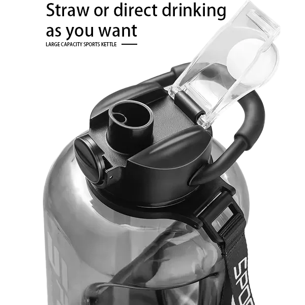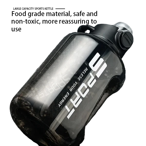 This 1700ml sports water bottle is designed for fitness and outdoor enthusiasts. Made from food-grade material, it ensures safety and durability. The ergonomic handle offers a comfortable grip, while the built-in straw and wide-mouth spout provide versatile drinking options. A one-press button allows for quick lid opening. This bottle is resistant to extreme temperatures, holding hot water up to 100C and cold drinks down to -20C. Available in multiple stylish colors, it is perfect for the gym, outdoor adventures, and daily hydration. Customize with your brand logo for a unique touch