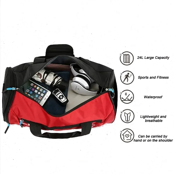 This high-capacity sports gym bag is designed to keep you organized during your fitness routines. Made from durable Oxford fabric, it offers a 24L storage capacity, perfect for all your workout essentials. With multiple compartments, it allows easy organization for your gear, including an independent shoe compartment to keep your shoes separate. The bag features water-resistant properties to protect your items from light rain. The ergonomic design ensures comfort with breathable, load-reducing straps that allow you to carry it by hand or on your shoulder. Available in a variety of colors, including pink, red, blue, green, and black, it’s ideal for the gym, sports events, or casual outings.