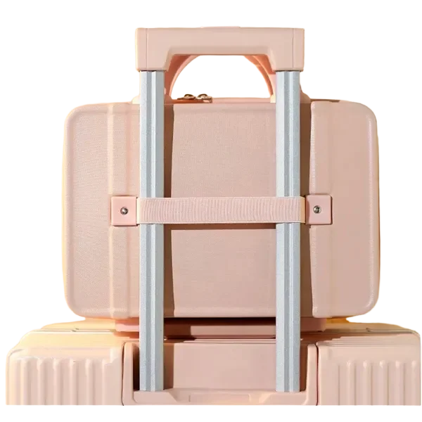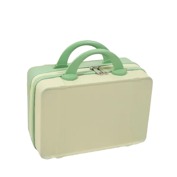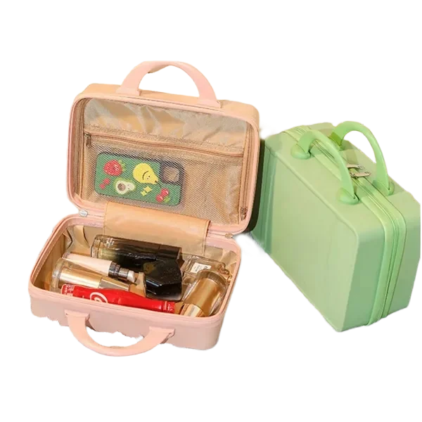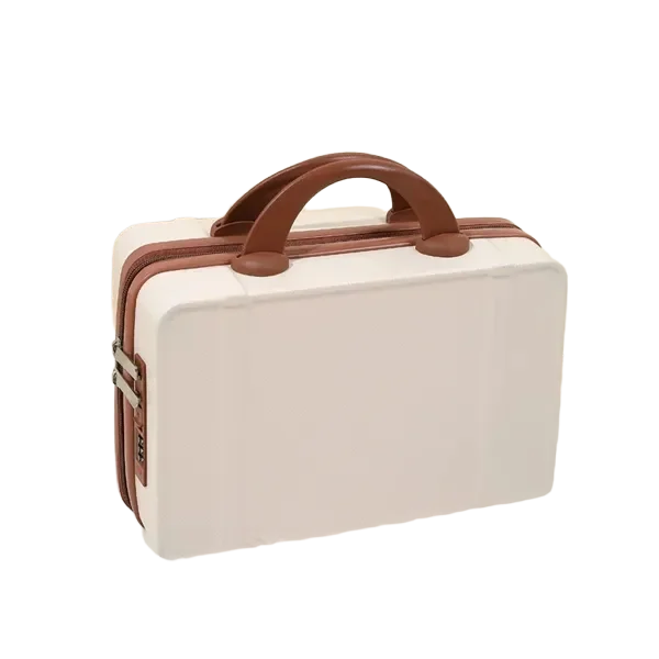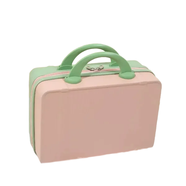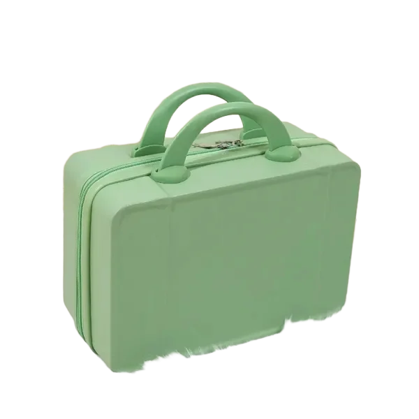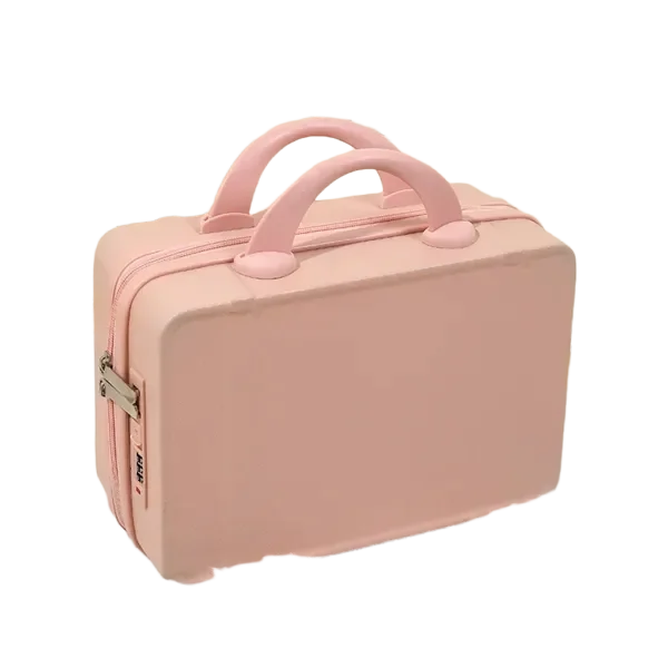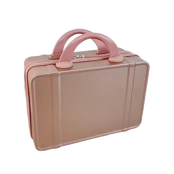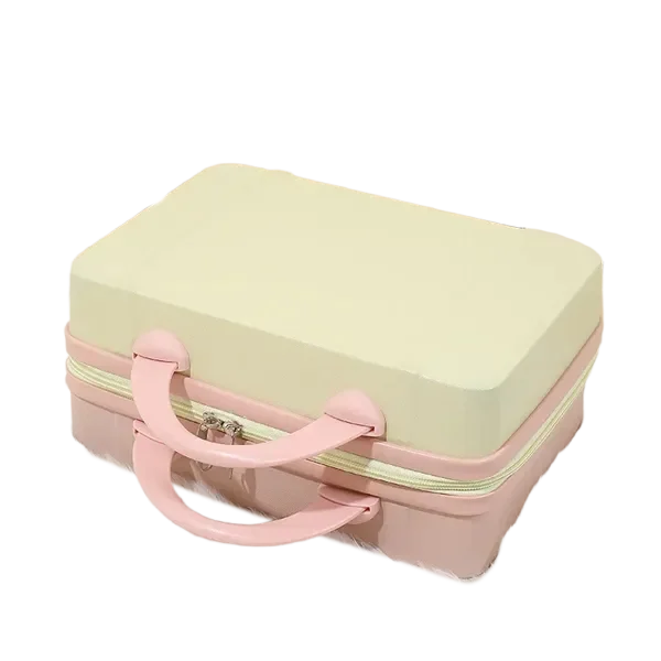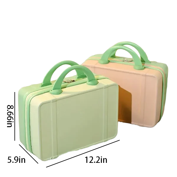 Travel in style with this vintage-inspired 14-inch mini travel makeup case. Designed for beauty lovers and frequent travelers, this compact suitcase features a sturdy, lightweight design with a durable hard shell exterior. Measuring 12.2 x 5.9 x 8.66 inches, it offers ample storage space for cosmetics, toiletries, or essentials. The ergonomic handle ensures comfortable carrying, while the built-in fixed back strap allows easy attachment to rolling luggage for hands-free travel. Available in 11 trendy colors, this chic mini suitcase is a fashionable and functional companion. Whether used as a carry-on, vanity case, or stylish handbag alternative, it blends practicality with elegance. Ideal for personal use or as a thoughtful gift.