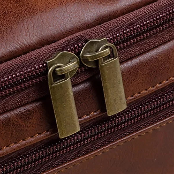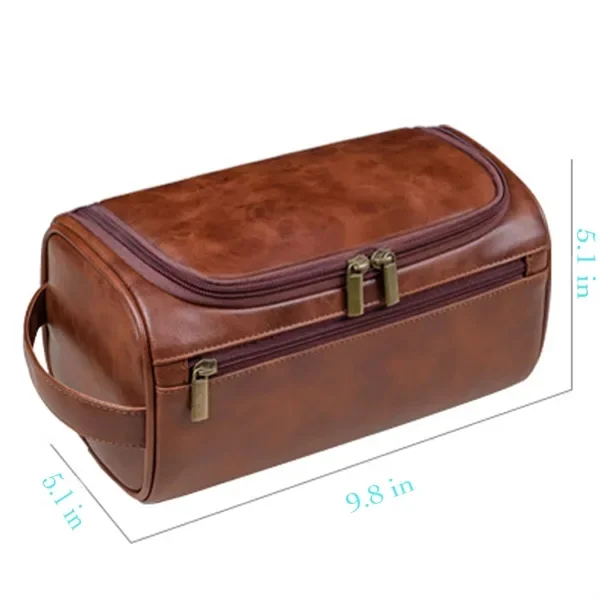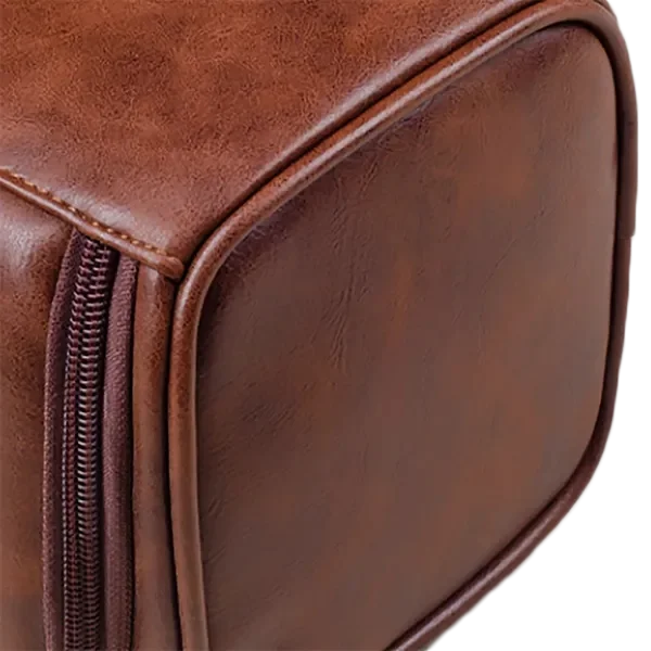 Suitable for both men and women, customization options include logo printing, making it a great promotional gift for corporate or wellness programs. Whether for weekend getaways, business trips, or daily use, this bag ensures your items stay organized in style.This vintage-inspired PU leather hanging toiletry bag combines style and functionality for your travel needs. The bag features a durable metal hanging hook for easy access and a breathable zippered mesh pocket to prevent moisture buildup. The high-quality PU leather material provides a luxurious feel while ensuring long-lasting durability and water resistance. Its double zipper design and reinforced structure enhance usability, while the compact size makes it a perfect travel companion.