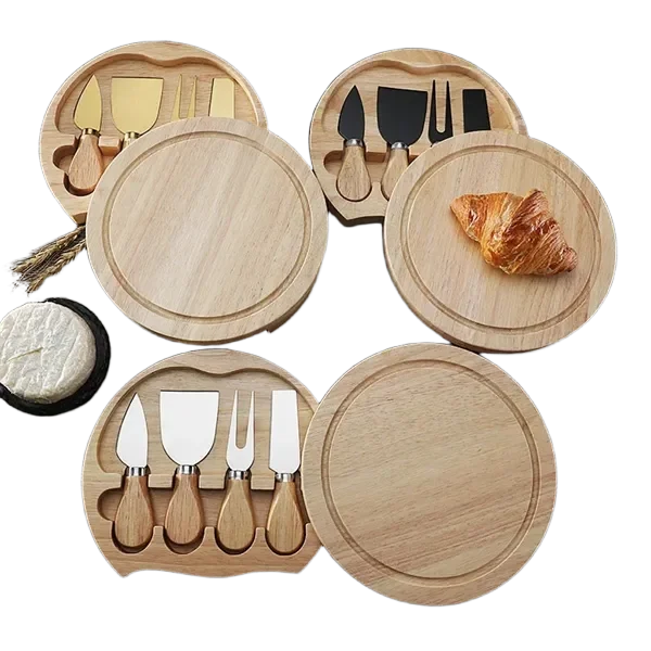 Custom logo printing is available for branding or gifting needs, adding a personal or professional touch to this versatile cheese board set.The board is crafted from durable wood and features a hidden compartment with four stainless steel cheese tools: a cheese knife, cheese slicer, cheese fork, and spreader, all with ergonomic wooden handles for a comfortable grip. The compact design allows for easy storage, making it ideal for small spaces or on-the-go use, such as picnics or gatherings. A great addition to your kitchenware collection, this set is perfect for serving cheese, charcuterie, and other appetizers at parties or holidays. Its natural wood construction adds a sustainable touch, making it a thoughtful gift for foodies, cheese lovers, or corporate events.