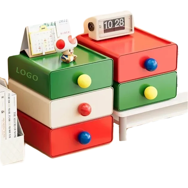 Colorful Stackable Drawer Organizer with Round Handle Design