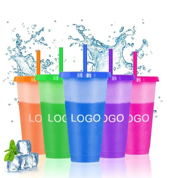 Custom 710ml Color-Changing Cold Cup with Straw & Lid